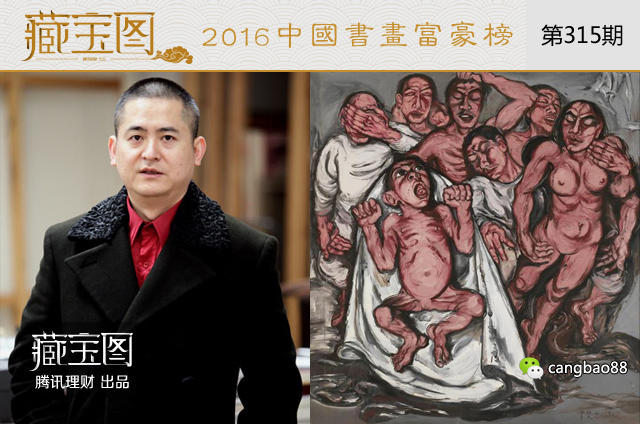 【TOP2:曾梵志1.22億】曾梵志1964年出生于武漢。從二十世紀(jì)九十年代起,曾梵志的作品以其獨(dú)特的語(yǔ)言風(fēng)格和敏銳的社會(huì)批判,受到評(píng)論界廣泛的贊譽(yù)。2013年,曾梵志《最后的晚餐》以1.81億港元的價(jià)格成交,刷新了他的個(gè)人紀(jì)錄。2016年香港佳士得春拍,他的《獻(xiàn)血過(guò)量》(右圖)以3036萬(wàn)港元成交。