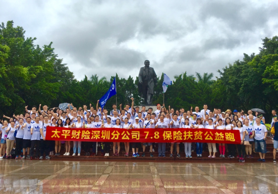 活動期間,深圳分公司積極組織員工參加公益跑活動,每日捐贈里程。7月8日當(dāng)天,深圳分公司特別組織公司數(shù)百名員工至蓮花山公園開展“7.8公里扶貧公益跑”活動,縱使天降驟雨依然抵擋不住太平員工踐行公益的熱情,為雨中的公園增添了一道靚麗的“太平彩虹”。