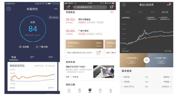 什么類別的理財產(chǎn)品適合你?高風險高收益or低風險低收益?來做個財富體檢吧,以前只能前往網(wǎng)點和客戶經(jīng)理面對面聊天,才能享受的財富體檢報告及資產(chǎn)配置建議,現(xiàn)在在招商銀行App6.0里就能完成,為你框定適合的投資類別。選定大類以后,哪幾支產(chǎn)品表現(xiàn)更好、值得關(guān)注?你既可參考大家都投的熱門理財主題,也可根據(jù)智能推薦,選擇和你搜索、購買相似產(chǎn)品或資產(chǎn)結(jié)構(gòu)相近的人投資的產(chǎn)品。選定了感興趣的幾支產(chǎn)品,可用基金比較器,直觀對比感興趣的兩支基金的關(guān)鍵信息,業(yè)績表現(xiàn)、歷史走勢、交易規(guī)則、基金公司概況等一目了然,還可用定投模擬器,直觀查看這支產(chǎn)品在某一時期內(nèi)的定投表現(xiàn),輕松選出最適合的一支產(chǎn)品。