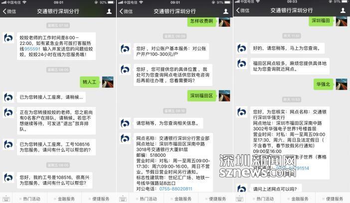交通銀行深圳分行云端銀行新增人工客服功能