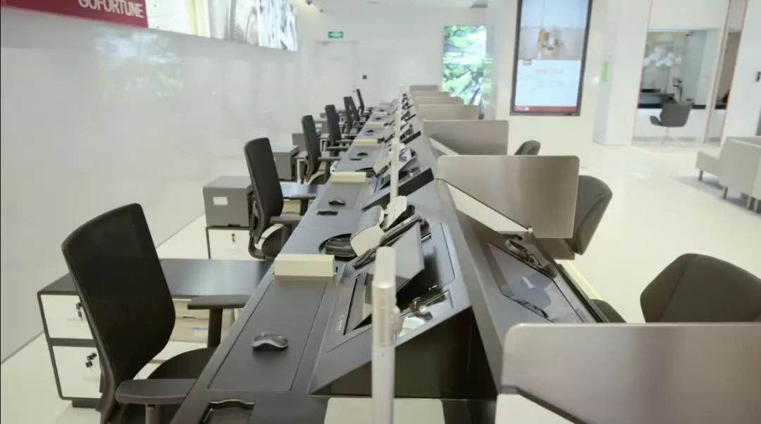 在客戶隱私保護(hù)方面,招行3.0網(wǎng)點(diǎn)也可謂是下足了功夫,傳統(tǒng)聯(lián)排的理財(cái)柜臺(tái)設(shè)計(jì)成了小隔間,增加了私密性。金葵花區(qū)所有的洽談間都配備了霧化玻璃,沒(méi)有客戶的時(shí)候,玻璃呈透明狀態(tài),有客戶的時(shí)候,玻璃就可以一鍵霧化,有效保護(hù)客戶隱私。