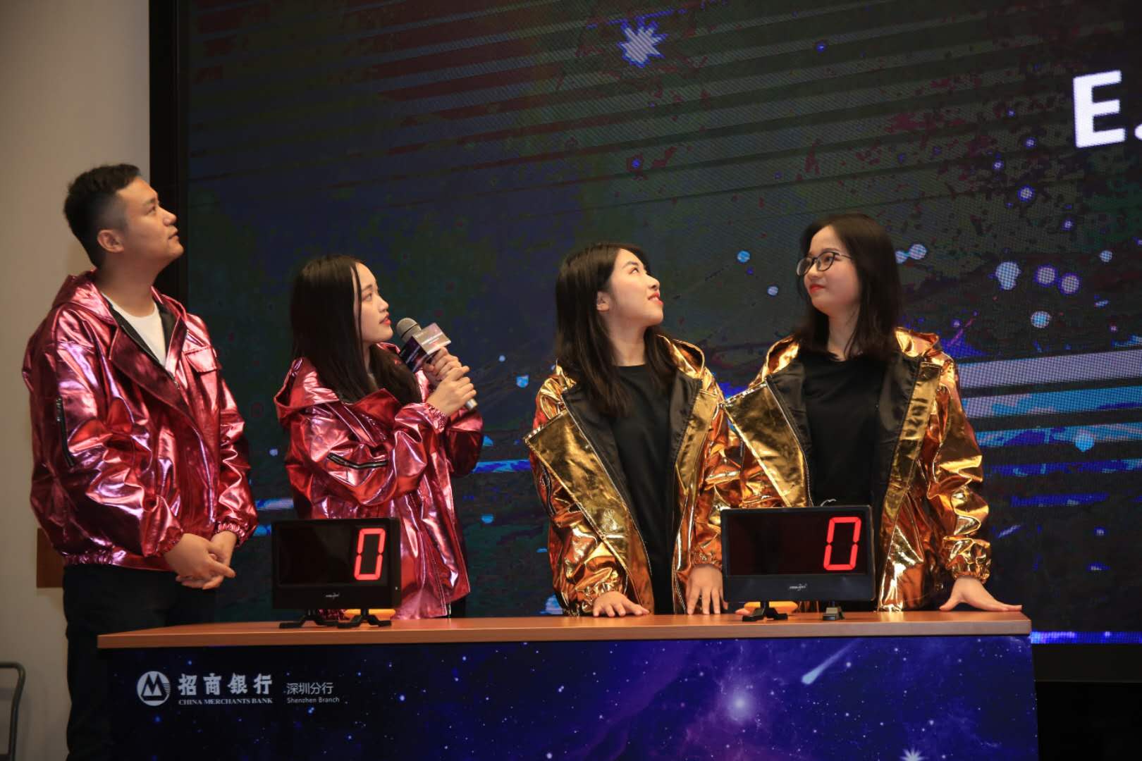 招商銀行深圳分行相關領導出席了此次活動,并作為活動啟動嘉賓按動飛船起航按鈕,開啟了一場科技與靈感相互碰撞的零售金融科技之旅。本次活動共分為三個部分:穿梭時空的宇宙魔方、飛船起航的能量源、平衡時空的靈魂寶石,分別通過場景展示、知識競答和話題辯論呈現出未來銀行像魔方一樣千變萬化的可能、前行路上不可缺少的現實能量和思想交鋒的靈魂思考。各隊最終需集齊這三個方面的多維構想才能駕馭宇宙飛船,取得未來銀行建設圣經。