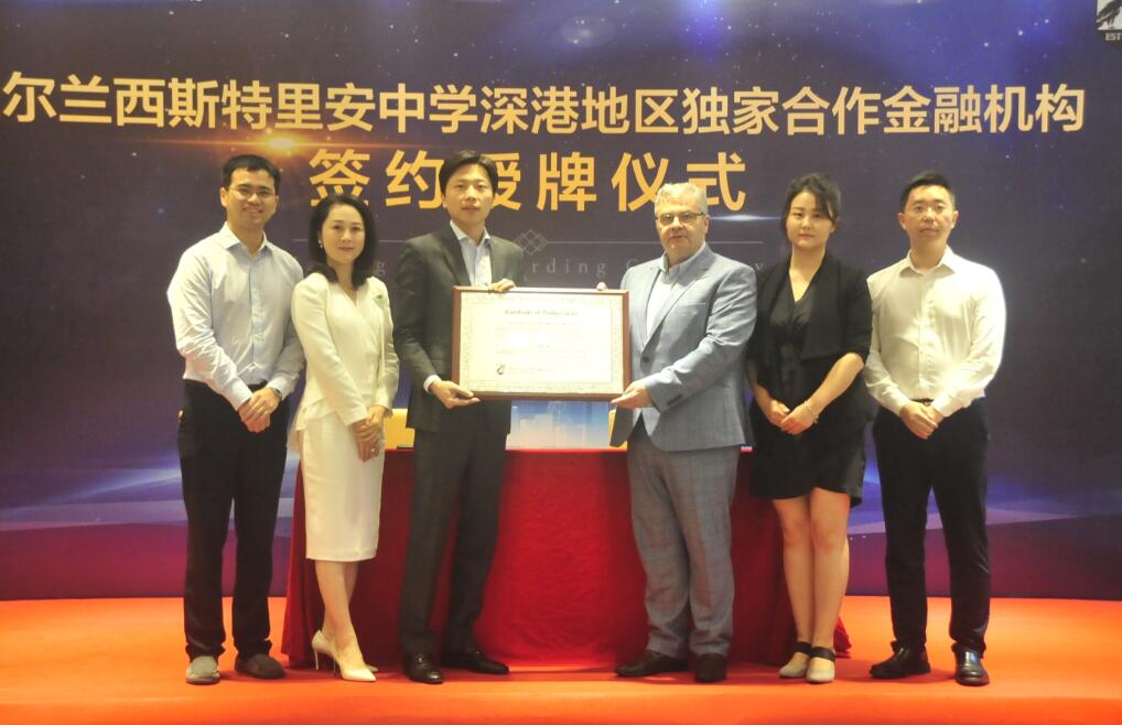 中國光大銀行深圳分行與愛爾蘭頂級(jí)私立男校簽署獨(dú)家合作授牌儀式現(xiàn)場