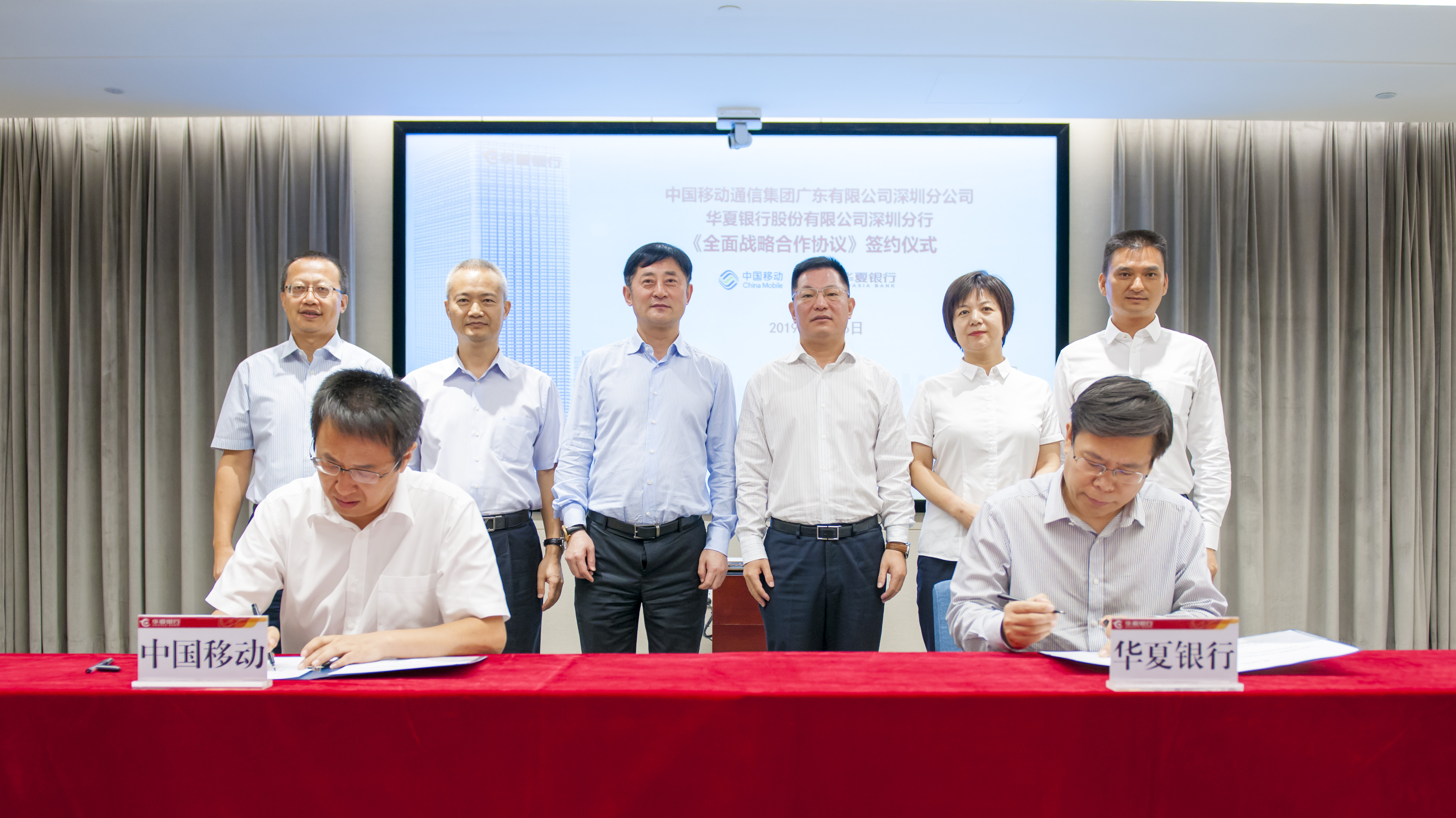 近日,華夏銀行深圳分行與中國(guó)移動(dòng)通信集團(tuán)廣東有限公司深圳分公司簽訂《全面戰(zhàn)略合作協(xié)議》,華夏銀行黨委委員、深圳分行黨委書記、行長(zhǎng)陳傳龍與中國(guó)移動(dòng)通信集團(tuán)廣東有限公司黨委委員、副總經(jīng)理祿杰等有關(guān)領(lǐng)導(dǎo)共同見(jiàn)證了協(xié)議簽署。
