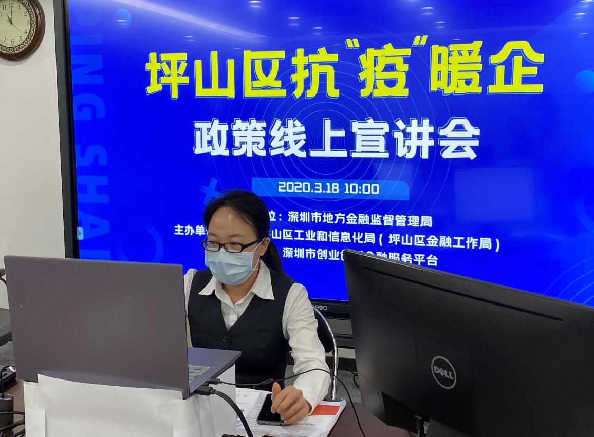 為充分支持坪山區(qū)內(nèi)企業(yè)抗擊疫情和復(fù)工復(fù)產(chǎn),攜手企業(yè)共渡難關(guān),2020年3月18日上午,深圳農(nóng)商行坪山支行通過(guò)“線上宣講”方式參加了由坪山區(qū)工業(yè)和信息化局聯(lián)合開展的抗“疫”暖企政策宣講和銀企對(duì)接系列活動(dòng)?;顒?dòng)中,深圳農(nóng)商行坪山支行為區(qū)內(nèi)100多家企業(yè)詳細(xì)介紹該行在抗疫期間推出的“抗疫周轉(zhuǎn)貸”、“抗疫訂單貸”、“抗疫醫(yī)療貸”等專屬產(chǎn)品,同時(shí)也為企業(yè)推薦了“速抵貸”、“速易貸”、“稅e貸”、“通發(fā)貸”等特色產(chǎn)品。