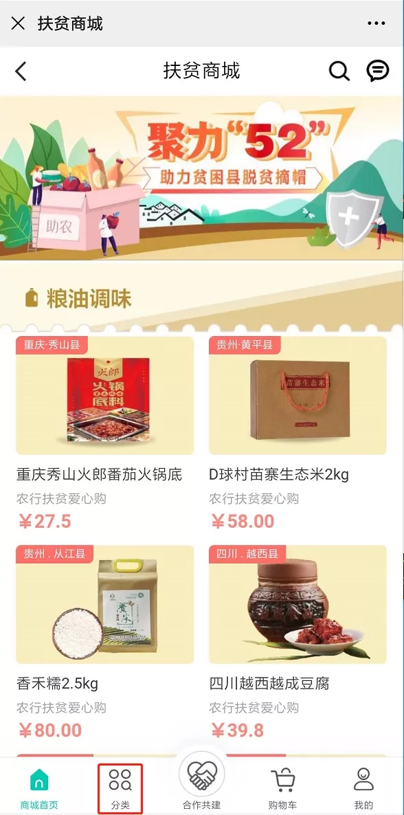 打開農(nóng)行掌銀APP,點擊“生活”-“扶貧商城”