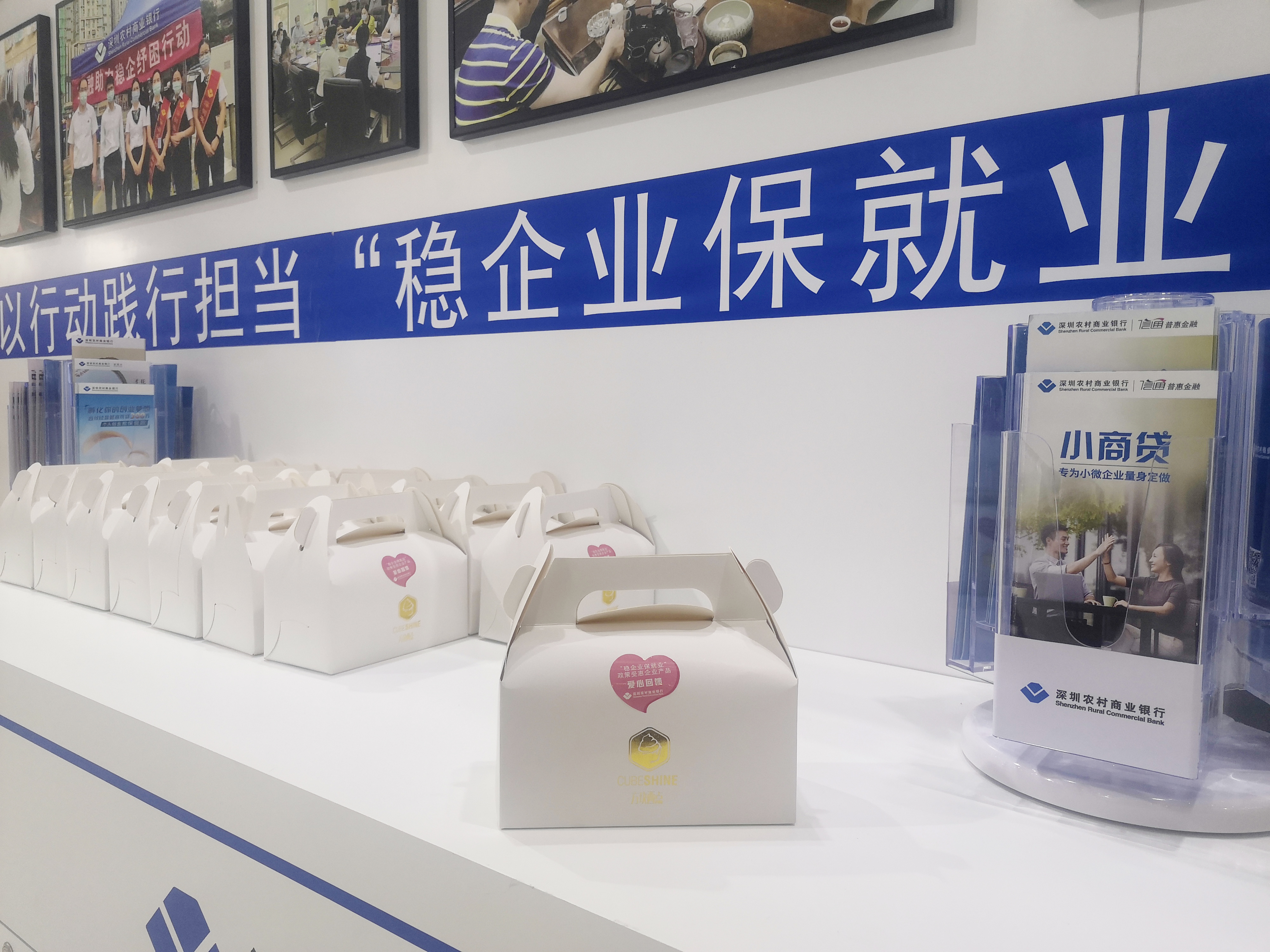 值得一提的是,該行還邀請(qǐng)了2家“穩(wěn)企業(yè)保就業(yè)”政策受惠企業(yè)來(lái)到展會(huì)現(xiàn)場(chǎng),展示其在金融支持下復(fù)工復(fù)工后的最新產(chǎn)品,以及舉辦回饋客戶(hù)的愛(ài)心活動(dòng)。在展會(huì)現(xiàn)場(chǎng)可以看到,來(lái)自易普森生物科技(深圳)有限公司醫(yī)院物流機(jī)器人和醫(yī)院消毒機(jī)器人在展會(huì)現(xiàn)場(chǎng)來(lái)回穿梭,金博會(huì)參觀者在有序排隊(duì)領(lǐng)取深圳農(nóng)商行派發(fā)的方塊西點(diǎn)面包店的點(diǎn)心。據(jù)了解,這兩家企業(yè)都是在疫情發(fā)生后,深圳農(nóng)商行通過(guò)深入社區(qū)和下沉街道主動(dòng)上門(mén)摸排客戶(hù)需求時(shí),了解到客戶(hù)面臨資金周轉(zhuǎn)問(wèn)題后,開(kāi)通綠色通道,快速審批發(fā)放了信用貸款,及時(shí)為客戶(hù)解決了資金難題,此次在展會(huì)現(xiàn)場(chǎng)展出的也是該2家公司最新研發(fā)的成果和熱銷(xiāo)產(chǎn)品。
