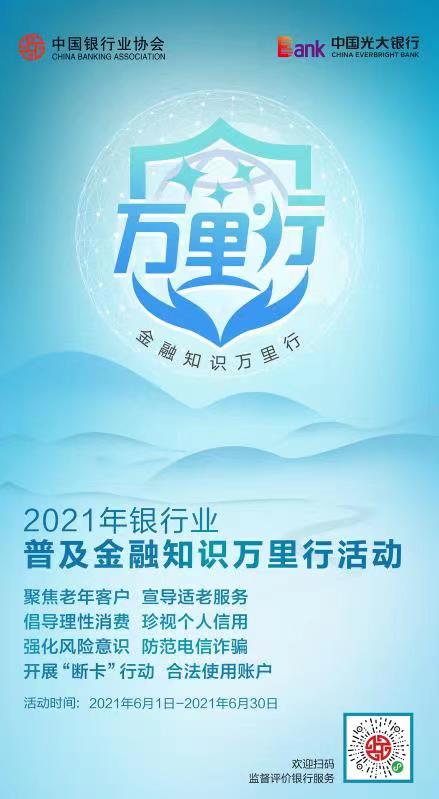 本次活動時間從2021年6月1日至6月30日,根據(jù)光大銀行深圳分行陽光服務(wù)(消費者權(quán)益保護)辦公室負責(zé)人介紹,活動期間將老年人移動支付的知識宣傳教育、金融知識進校園活動以及向金融消費者普及電信詐騙的危害和存在的多種形式,以及需要注意的風(fēng)險問題等主題進行重點宣傳教育。對不同消費者群體組織開展有特色的宣傳教育活動,以群眾喜聞樂見、通俗易懂的方式,廣泛開展宣傳教育活動。