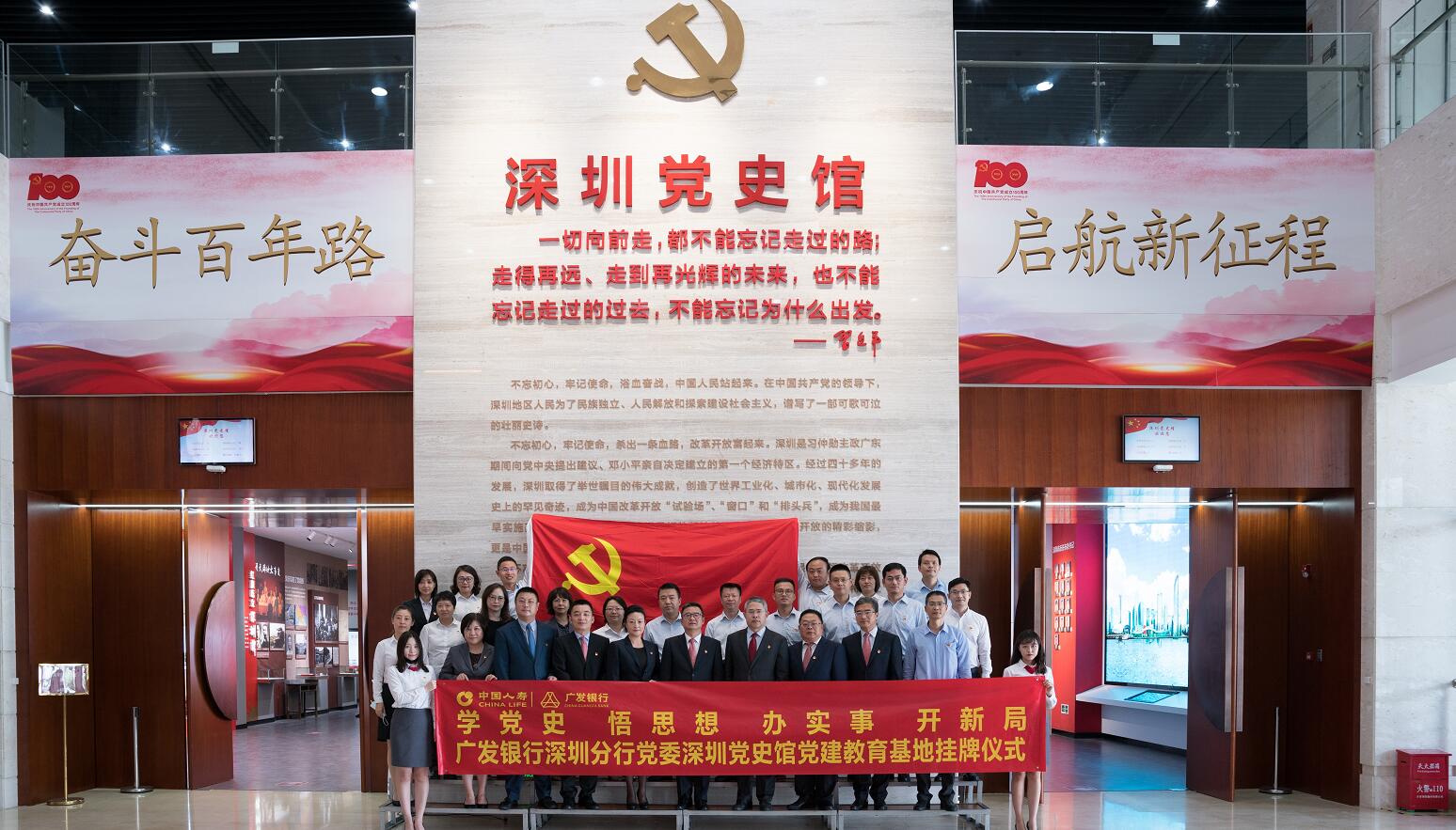 深圳新聞網(wǎng)2021年6月15日訊 近日,廣發(fā)銀行深圳分行在深圳黨史館方志館舉行深圳黨史館方志館現(xiàn)場教學(xué)基地掛牌儀式。分行黨委書記、行長王家銘同志,中共深圳市委黨史文獻研究室文獻處處長詹延欽同志出席儀式并共同揭牌。