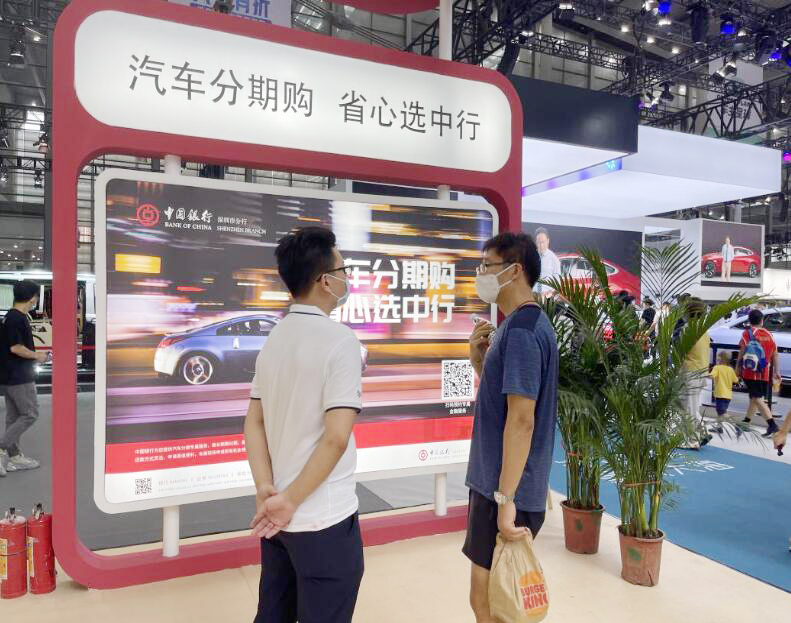 響應(yīng)國(guó)家綠色轉(zhuǎn)型號(hào)召,助力發(fā)展我國(guó)綠色金融,本次深圳中行與合作的11家新能源車品牌一同參展。據(jù)深圳中行相關(guān)負(fù)責(zé)人介紹,深圳中行已與24個(gè)新能源車品牌、82家門店建立合作關(guān)系,累計(jì)為約1.6萬名客戶提供新能源汽車分期業(yè)務(wù)。為滿足灣區(qū)居民綠色出行需求,深圳中行還針對(duì)有車一族加購(gòu)新能源車優(yōu)化了審批政策,提供專屬汽車分期方案。
