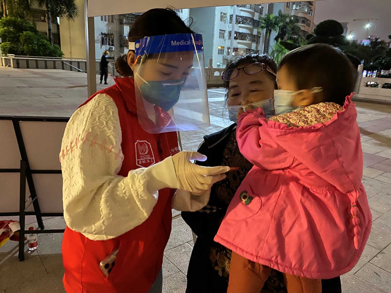 2月18日晚,寒風瑟瑟的夜里,皇崗社區(qū)核酸采樣點還排著長龍。華夏銀行深圳分行的黨員、青年團員迅速集結為“青年突擊隊”,在做好安全防護的基礎上,深入福田街道皇崗文化廣場、高發(fā)城馳廣場核酸采集點,協(xié)助防疫工作組維護現(xiàn)場秩序、身份信息登記等志愿服務工作,幫助社區(qū)提升核酸檢測效率。高新支行儲雨欣耐心地指導一位抱著小孩的阿姨錄入核酸檢測信息,她趕到核酸采樣點已經(jīng)接近晚上8點。“剛剛從支行軋賬下班,雖然有些晚了,但我還是想來?!?/p>