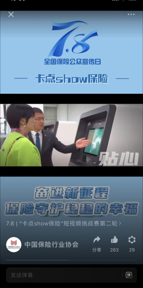 豐富多樣的線下活動(dòng),僅是太平人壽開展“7·8保險(xiǎn)宣傳日”系列活動(dòng)的一個(gè)側(cè)面。而另一個(gè)側(cè)面,太平人壽充分利用微博、抖音、視頻號(hào)等互聯(lián)網(wǎng)平臺(tái),積極貫徹落實(shí)中國(guó)保險(xiǎn)業(yè)協(xié)會(huì)組織開展的“卡點(diǎn)show保險(xiǎn)”短視頻話題挑戰(zhàn)活動(dòng)及“cue到我的幸福感@第10個(gè)7.8全國(guó)保險(xiǎn)公眾宣傳日”網(wǎng)絡(luò)話題活動(dòng)。