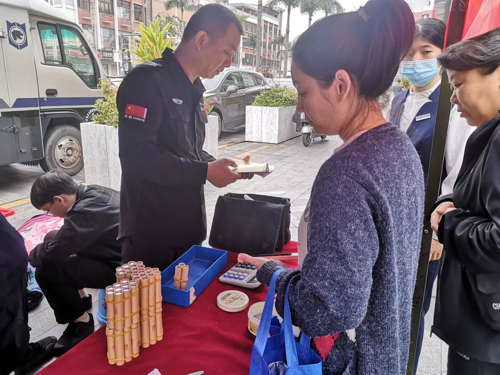 開(kāi)展硬幣大篷車(chē)兌換活動(dòng),活躍社區(qū)零鈔交互,滿(mǎn)足社區(qū)居民的硬幣需求。2023年,深圳農(nóng)商銀行聯(lián)合威豹押運(yùn)公司開(kāi)展17次硬幣大篷車(chē)兌換活動(dòng),回收硬幣約70萬(wàn)元,同時(shí)向有需要零散鈔的超市、商戶(hù)、市民提供成卷的硬幣兌換。在兌換活動(dòng)現(xiàn)場(chǎng),同時(shí)宣傳反假貨幣、不得拒收現(xiàn)金等內(nèi)容,營(yíng)造良好的人民幣支付流通環(huán)境。