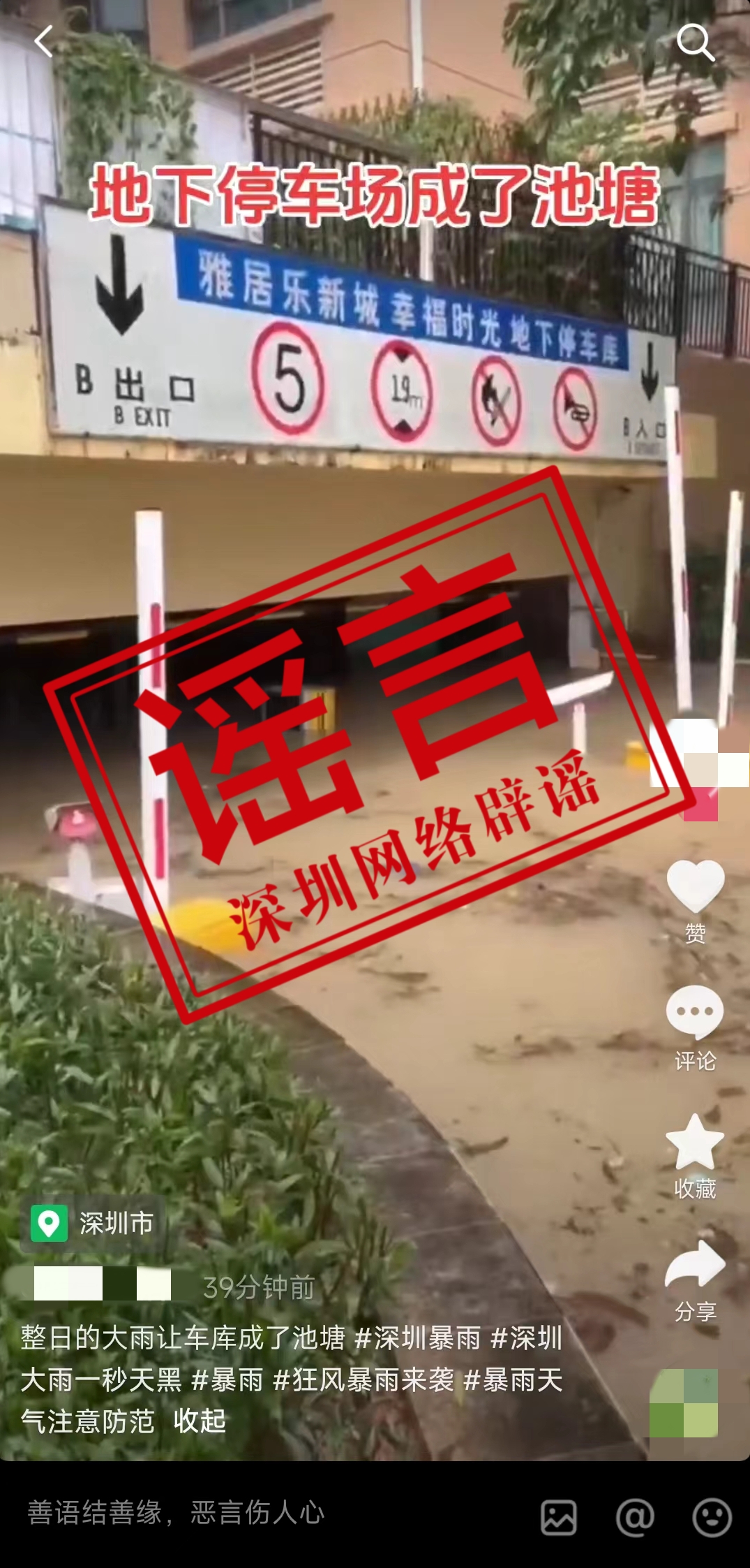 網(wǎng)傳深圳暴雨致地下車庫被淹?并非發(fā)生在深圳!