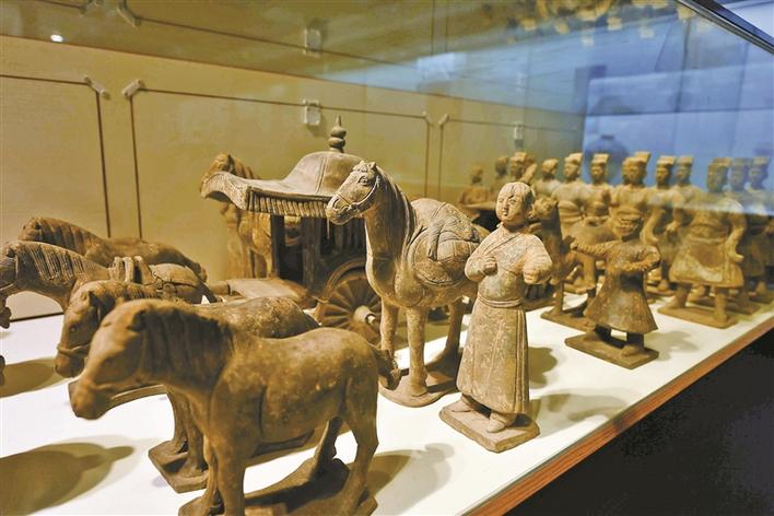 深圳古玩城展出的“黑陶車(chē)馬駱駝俑一組”。