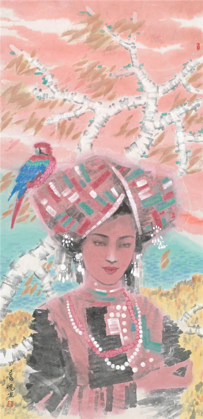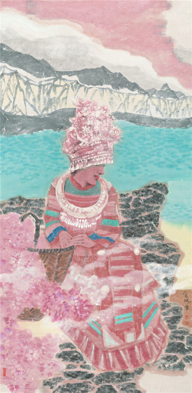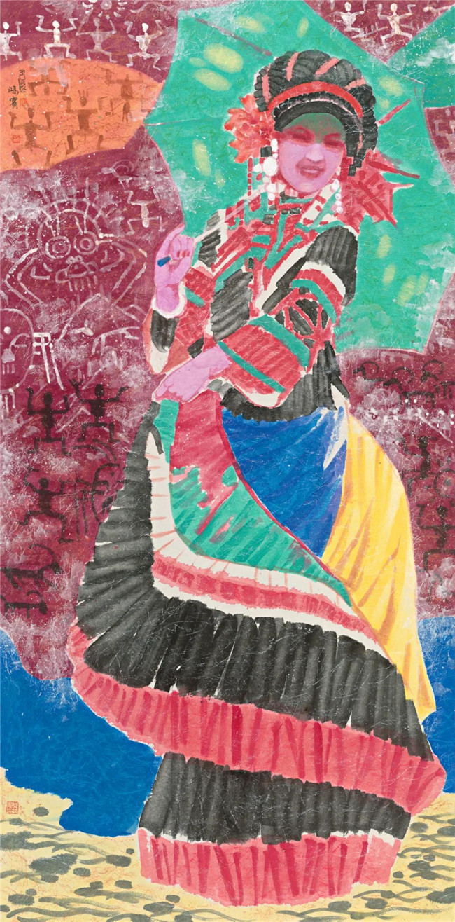 高山上的舞蹈 彩墨 136X68cm 2020年
