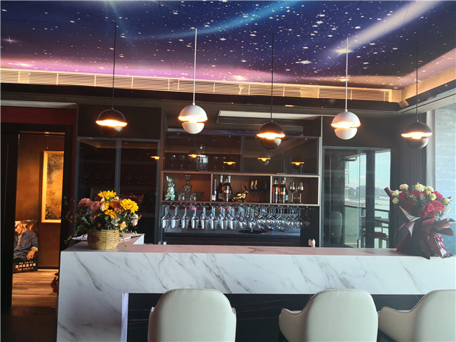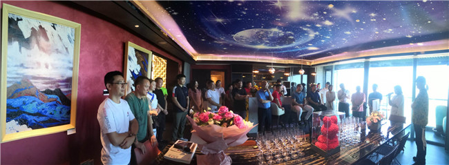 樊鴻賓美術(shù)館座落在珠海市香洲區(qū)內(nèi),旁接情侶路,目眺鳳凰灣,一派浪漫情調(diào),真是一塊滋養(yǎng)藝術(shù)的風(fēng)水寶地。展館所在的天宸大廈十六樓。面朝大海,視野開(kāi)闊,藍(lán)天白云,碧海揚(yáng)帆,讓人心曠神怡。與此同時(shí),室內(nèi)樂(lè)聲輕伴、紅酒飄香,此景、此情映襯之下,緩步巡看展品,或細(xì)細(xì)靜賞佳作,自然而然有一份莫名舒適的藝術(shù)享受。