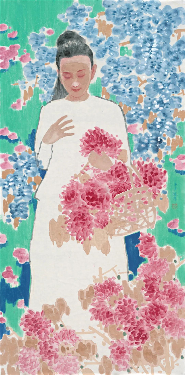 又見(jiàn)山花開(kāi) 彩墨 136X68cm 2019年