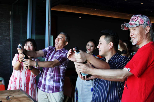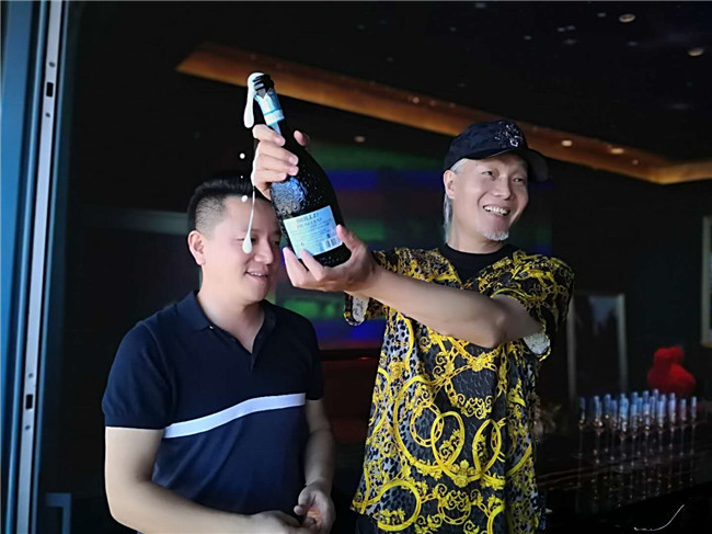開(kāi)館儀式上,樊鴻賓老師講話并開(kāi)香檳慶祝