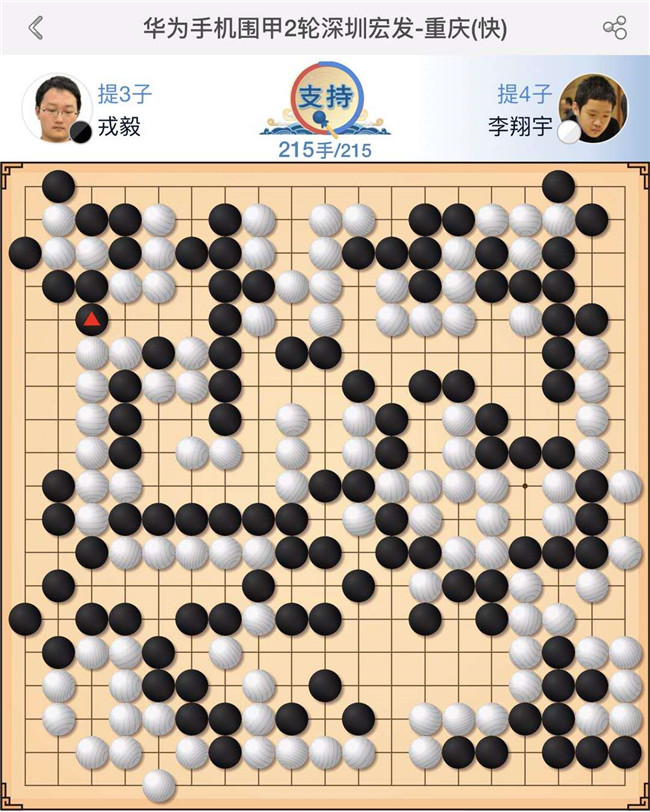 賽后,深圳宏發(fā)隊(duì)教練、著名世界冠軍羅洗河九段對(duì)四盤棋作了簡(jiǎn)要點(diǎn)評(píng):“第一臺(tái)陶欣然執(zhí)黑對(duì)陣?yán)钴幒馈W笙陆呛?3應(yīng)該先走24打交換一個(gè)次序,實(shí)戰(zhàn)虧損。中盤右下角形成打劫時(shí),黑棋轉(zhuǎn)換判斷錯(cuò)誤局面更加不利。后面中央黑棋再度制造劫爭(zhēng)無(wú)奈沒(méi)有劫財(cái),敗北?!薄暗诙_(tái)主將申旻俊執(zhí)白對(duì)陣楊鼎新。開(kāi)局右下角作戰(zhàn)白棋退讓小虧一點(diǎn),中盤上方作戰(zhàn)時(shí)候雙方錯(cuò)進(jìn)錯(cuò)出,最后由于白棋下出緩手沒(méi)有把握機(jī)會(huì)換回局勢(shì)。官子時(shí)候黑棋發(fā)揮更好,擴(kuò)大優(yōu)勢(shì)至終局?!薄暗谌_(tái)快棋戎毅執(zhí)黑對(duì)陣小將李翔宇。白60分?jǐn)喙艉谄鍟r(shí)形狀不佳,黑機(jī)敏反斷白棋并做活,之后黑越戰(zhàn)越勇,215手,黑中盤勝。”“第四臺(tái)時(shí)越執(zhí)白對(duì)陣小將何語(yǔ)涵。開(kāi)局平穩(wěn)白稍好,白52失誤走53更嚴(yán)厲。實(shí)戰(zhàn)被黑53跨斷后局面接近。中后盤雙方失誤都較多,最終黑棋幸運(yùn)的以3/4子差距獲勝?!?/p>