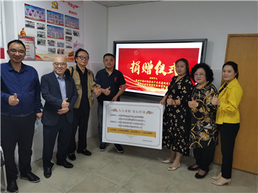 10月23日下午,深圳市簕杜鵑養(yǎng)老產(chǎn)業(yè)發(fā)展促進(jìn)中心理事長周虹(左二)、黨支部委員黃澤惠(左三)、曹寶蘭(左四),羅湖區(qū)醫(yī)養(yǎng)融合老年病醫(yī)院院長邱傳旭(右三)和深圳中創(chuàng)智慧研究集團(tuán)有限公司董事長岑象日(右一)一行來到活動現(xiàn)場,為鶴年居家養(yǎng)老服務(wù)中心送去4臺多功能輪椅、100支手杖及14400個口罩等愛心物品。