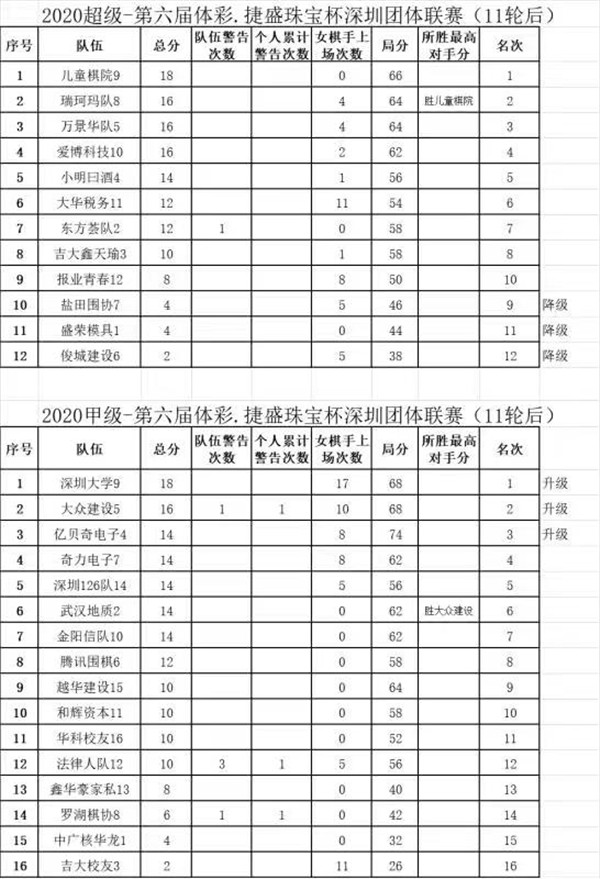 附錄:深圳市第六屆圍棋聯(lián)賽超級組、甲級組最終比賽結果