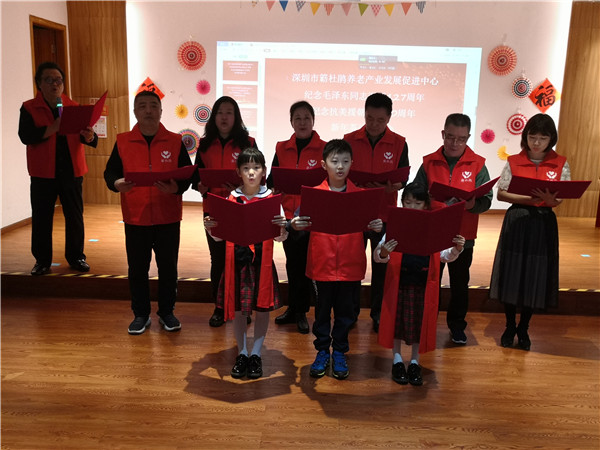 紀(jì)念活動(dòng)伊始,深圳市社會(huì)組織管理局副局長白凌在出差途中發(fā)來視頻祝賀。簕杜鵑養(yǎng)老產(chǎn)業(yè)促進(jìn)中心上級(jí)領(lǐng)導(dǎo)張道新也一直關(guān)注和支持活動(dòng)的進(jìn)展?;顒?dòng)現(xiàn)場,簕杜鵑養(yǎng)老產(chǎn)業(yè)促進(jìn)發(fā)展中心黨支部書記于軍發(fā)表了熱情的簡短的講話。他首先對(duì)前來參加和指導(dǎo)活動(dòng)的老首長、老前輩和各位嘉賓表示衷心的感謝。隨后,他簡短地介紹了簕杜鵑養(yǎng)老中心的發(fā)展情況。他說,該養(yǎng)老中心是按照習(xí)總書記“推動(dòng)養(yǎng)老事業(yè)多元化、多樣化發(fā)展”的指示下成立的,得到社會(huì)管理局的支持和指導(dǎo),將會(huì)在深港兩地開展養(yǎng)老信息咨詢、養(yǎng)老機(jī)構(gòu)服務(wù)等。目前,成立了簕杜鵑養(yǎng)老產(chǎn)業(yè)發(fā)展中心黨支部、簕杜鵑養(yǎng)老產(chǎn)業(yè)藝術(shù)團(tuán),并將爭做黨建、文化建設(shè)的“雙排頭兵”作為該社團(tuán)的目標(biāo)之一。今年,已開展獻(xiàn)愛心走訪慰問,重陽節(jié)為羅湖區(qū)鶴年居家養(yǎng)老中心的老人送去4臺(tái)多功能輪椅、100支手杖、14400個(gè)口罩等實(shí)用物品;協(xié)調(diào)部分社康中心、醫(yī)院和相關(guān)基金會(huì)共同舉辦大型的老年人義診活動(dòng);同時(shí)與市內(nèi)多家大健康企業(yè)進(jìn)行溝通,建立長期聯(lián)合互助渠道,籌建示范養(yǎng)老基地,探索深圳特色的養(yǎng)老模式,打造養(yǎng)服務(wù)品牌,造福深港兩地老人群體。