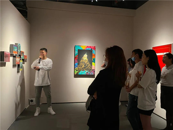 聯(lián)展現(xiàn)場三位作者向參觀者介紹創(chuàng)作經(jīng)歷及畫作意蘊。