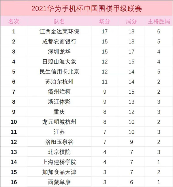 2021華為手機(jī)杯中國圍棋甲級聯(lián)賽第六輪深圳龍華隊1:3日照山海大象隊