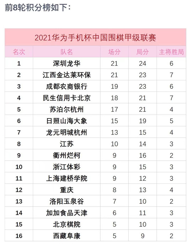 2021華為手機(jī)杯中國圍棋甲級聯(lián)賽常規(guī)賽第八輪深圳龍華隊4:0 洛陽玉泉谷隊