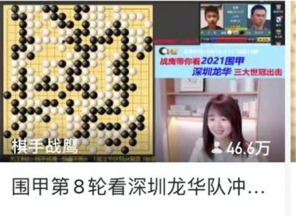 形勢大好,深圳龍華隊網(wǎng)上直播合作人,虎牙直播間圍棋知名主播戰(zhàn)鷹這里自然也是“門庭若市”,人數(shù)沖上46萬大關(guān)。賽后,石豫來到直播間作客,小帥哥自然受到熱捧!深圳龍華隊的后續(xù)戰(zhàn)況仍將在這里直播哦,關(guān)注戰(zhàn)鷹講棋,人美、棋強(qiáng)、口才好,是知名的圍棋主播。