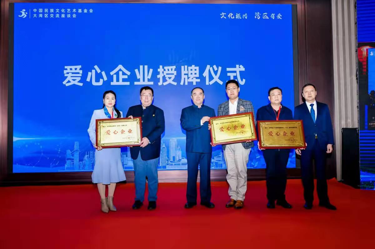 為了牢固樹立良好長久合作關(guān)系,共同推動大灣區(qū)民族文化發(fā)展,主辦方還為戰(zhàn)略合作伙伴中國文化傳媒集團南方總部基地,以及深圳智元教育文化傳播有限公司、四季熊少兒教育物聯(lián)科技(廣東)股份有限公司、名家物業(yè)管理(深圳)有限公司三家愛心企業(yè)舉行了授牌儀式。