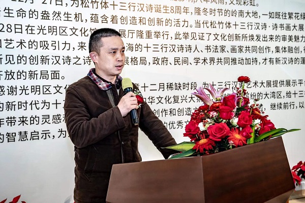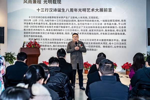讀特客戶端·深圳新聞網2021年12月29日訊(記者 田志強)近日,國家社科基金項目“當代漢詩創(chuàng)新詩體研究”階段性成果展——十三行漢詩書畫作品展,于光明區(qū)文化館成功舉辦。本次展覽集中展示本項目重要研究成果、全國各地新漢詩詩人的原創(chuàng)十三行漢詩之書畫作品等。十三行漢詩創(chuàng)立八年以來,得到了海內外詩人的廣泛關注,在國家社科基金研究團隊精研闡釋的基礎上,得到了學術界的肯定。