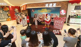 ?伴隨著《I Love Chicken Rock》的動(dòng)感舞曲,奇奇帶著肯德基四款“正能量”的新品與深圳市民朋友們見(jiàn)面。