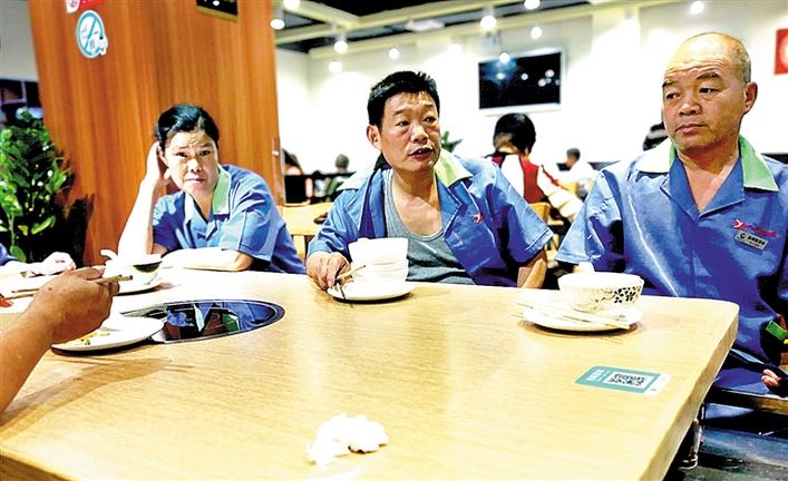 自2017年7月1日開業(yè)以來,面向環(huán)衛(wèi)工人、60歲以上老人和困難人士,“李三好火鍋”每天派發(fā)100份免費早餐。一份免費早餐包括兩個饅頭、一碟配菜(蘿卜干、拍黃瓜)、任吃的南瓜粥。