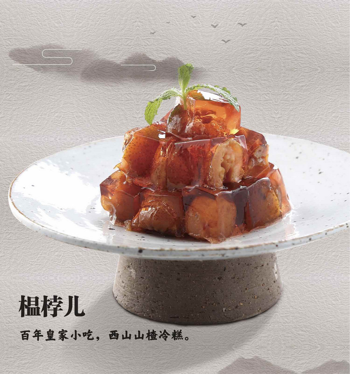 此名相傳為慈禧太后所賜,是她十分喜愛的小零嘴兒。榅桲與山楂外形相似,實則不同。它是山楂的一種,外體為紅色,更為小巧。梧桐餐廳在制作時也保證了北京傳統(tǒng)。選好果子后,先要焯水,并將水拋掉,否則有苦澀味,焯完的果實要扒皮,扒下來的皮和果肉可以一起先炒后煮。煮好的榅桲再經發(fā)酵、冷卻,成品榅桲湯晶瑩剔透,果實軟爛甜糯,吃后不倒牙,且能長期保存,不會腐敗。
