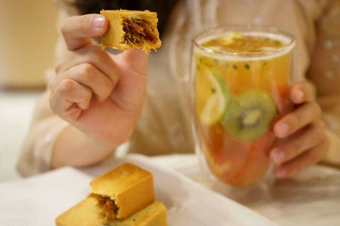 月餅有流心餡,鳳梨酥吃過(guò)流心的嗎?徐福記·呈味空間的咸蛋黃流心酥,跟傳統(tǒng)月餅有不同的酥軟的酥皮,吃起來(lái)口感綿密而不膩,是因?yàn)樗制だ锛尤肓四滔愦己竦陌布腰S油,烘焙界頂尖認(rèn)證的黃油,聞起來(lái)還有淡淡的奶香。內(nèi)餡是有香濃細(xì)滑的奶黃,里層藏著有流沙般的咸蛋黃,輕輕一咬,入口松化,餡料如熔巖般流出,飽滿的流心一下子就迸發(fā)喉嚨,軟諾的口感讓人欲罷不能,吃完還想吃。俗話說(shuō)流心更用心,富到流油好意頭,今年來(lái)點(diǎn)不一樣的“暴富“!