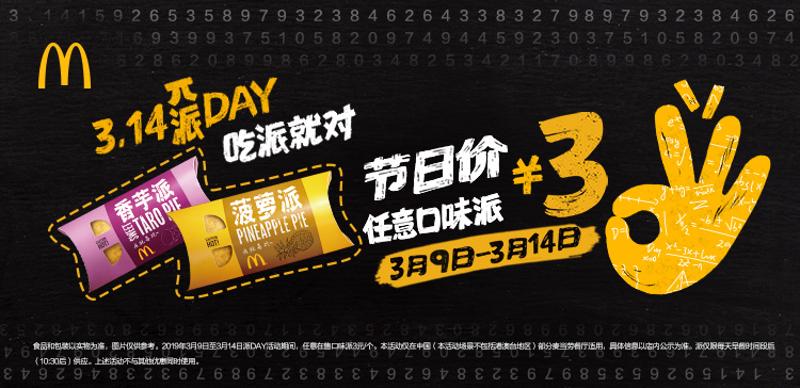 麥當勞中國在3月9日-3月14日舉辦第五年“派DAY”活動