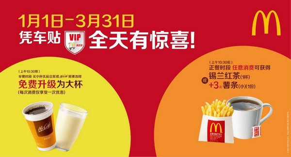 開車取餐少接觸,麥當勞“得來速”餐廳讓駕車的顧客購餐更方便、安全且快速。駕車者不用下車,在餐廳車道的窗口即可完成點餐、付款和取餐?,F在免費領取 VIP車貼享福利,3月31日前,早餐時段購買小杯優(yōu)品豆?jié){或鮮煮咖啡可免費升杯;正餐時段任意消費即贈錫蘭紅茶,或者加3元換一份小薯條。(常軍平)