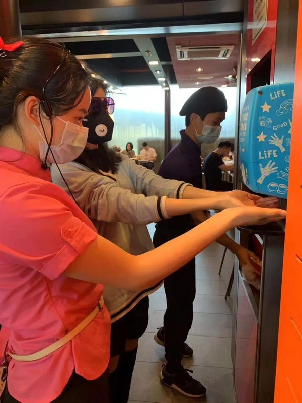 目前全國所有的麥當勞餐廳啟動上班員工測溫流程,并提高員工洗手消毒頻次,全國餐廳全員佩戴口罩。在餐廳為顧客提供免洗洗手液,對所有餐廳的通風系統(tǒng)和顧客常接觸的設施,強化消毒并增加頻次,包括大門把手、自助點餐屏、樓梯扶手、柜臺臺面、取餐區(qū)、桌椅、餐盤、兒童椅、兒童樂園等。