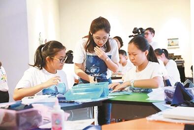 曾靜敏老師在指導(dǎo)學(xué)生創(chuàng)作。