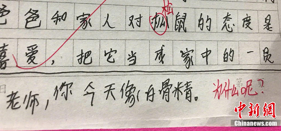 近日,貴州省谷隴翁板小學(xué)的語文老師張沁文,曬出了學(xué)生寫在作業(yè)里的“金句”。“老師,你太自戀了,QQ空間都是自己照片”;“顏值升高才有人喜歡您”……孩子們的童言無忌令人哭笑不得,老師的評論也很亮眼。