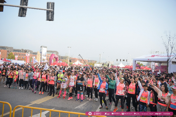 今年賽事現(xiàn)場最大的亮點在于,取消了開賽儀式,僅保留鳴槍一項流程。主會場起點區(qū)域沒有了大型噴繪的主席臺,取而代之的是小巧簡約的發(fā)令臺。上午7點,不間斷的熱身音樂響徹整個甜蜜小鎮(zhèn),運(yùn)動員們在進(jìn)入賽道集結(jié)后,配合著音樂,跟隨著健身教練的指引一起熱身。上午8點30分,鳴槍嘉賓們準(zhǔn)時登臺鳴槍,全體3000多名跑者一起沖出起點門,化作一片粉紅色的海洋,向著終點奔去?!叭∠_賽儀式對跑者來說是非常貼心的一項舉措,讓我們在進(jìn)入賽道之后依然能夠繼續(xù)熱身,時間一到準(zhǔn)時開跑,整個參賽流程也更加流暢了。”參賽選手在賽事現(xiàn)場直言道,簡化起跑前的儀式流程,對于跑者來說是一種更好的參賽體驗。