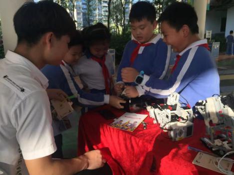 在活動現(xiàn)場,不少智能科技迷正被愛匯百變教育科技有限公司的EV3編程機器人高爾夫、EV3編程機器人幸運大轉(zhuǎn)盤、EV3編程機器人障礙大闖關、電磁感應千人震等系列體驗活動,通過親身體驗,同學們收獲了LEGO仿真機械結(jié)構(gòu)及圖形化編程、電動發(fā)電、電磁感應、電路等科普知識。
