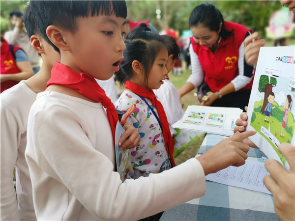 據(jù)悉,本次活動以闖關(guān)的形式,每年級各分10個關(guān)卡,每闖一關(guān)就獲得一個能量動物或者能量植物填補(bǔ)闖關(guān)卡的空白,各年級的學(xué)生需要在半小時內(nèi)將闖關(guān)卡的空白處填滿,才算闖關(guān)成功,獲得有校長贈言的書籍一本。關(guān)卡的設(shè)置以語文、數(shù)學(xué)和英語三個科別組成,其中,最受孩子們青睞的要數(shù)“筆架說話”這個關(guān)卡,孩子們把自己相像成筆架山的一員,然后介紹自己,有同學(xué)說:“我是筆架山的大樹,我可以給大家遮蔭,讓大家不用被太陽曬到。”、“我是筆架山的石頭,孩子們來筆架山玩的時候,可以把我們拼在一起做拼圖。”、“我想成為筆架山的暗綠繡眼鳥,就是嘴巴尖尖的,頭上綠綠的,眼睛邊上有點(diǎn)白色的那種,我要站在筆架山的枝頭上盡情歌唱,紅紅的火焰花為我做背景!”......孩子們通過豐富的相信力,盡情在老師與家長義工面前展現(xiàn)臨場的表達(dá)能力。