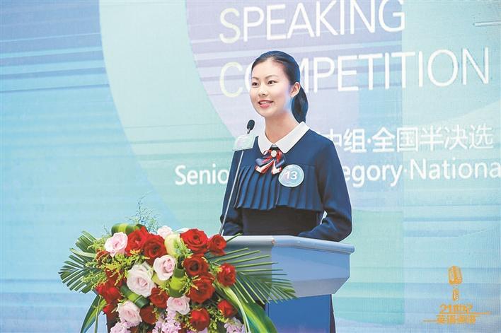 深外外語(yǔ)書院學(xué)生王心怡參加21世紀(jì)杯英語(yǔ)演講比賽全國(guó)總決賽。