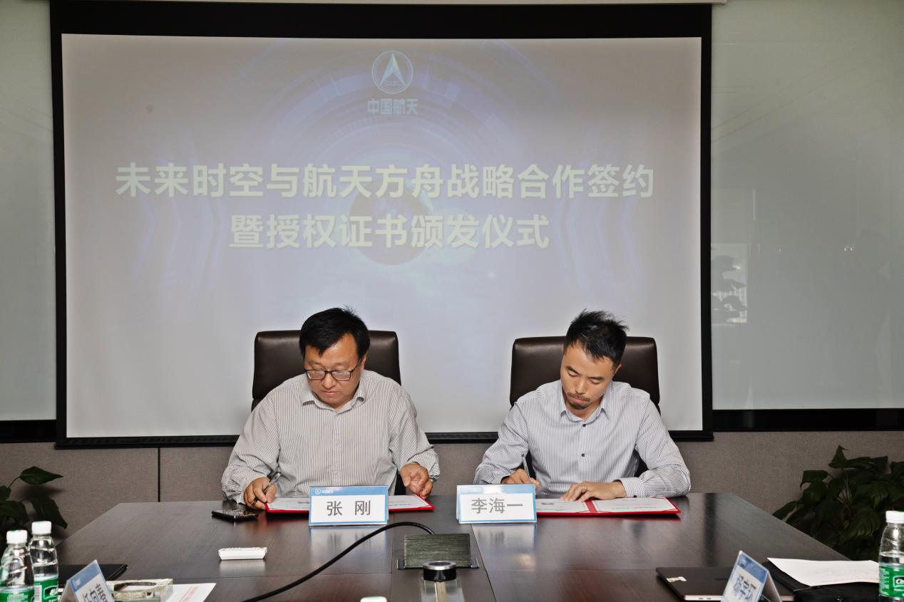 見圳客戶端·深圳新聞網(wǎng)2021年5月31日訊 (記者 陳彬)為深入推進(jìn)航天科技文化技術(shù)在社會(huì)生活、人民健康、科普教育、素質(zhì)教育和文化產(chǎn)業(yè)等領(lǐng)域的成果轉(zhuǎn)化和廣泛應(yīng)用,在中國(guó)航天系統(tǒng)科學(xué)與工程研究院有關(guān)領(lǐng)導(dǎo)的關(guān)心幫助下,未來時(shí)空(深圳)文化產(chǎn)業(yè)有限公司和北京航天方舟空間技術(shù)有限公司就航天文創(chuàng)產(chǎn)品開發(fā)、航天康養(yǎng)項(xiàng)目建設(shè)、航天科普教育及商業(yè)化航天器應(yīng)用等方面達(dá)成了全面合作,于5月28日上午在北京簽署戰(zhàn)略合作協(xié)議并頒發(fā)授權(quán)證書。