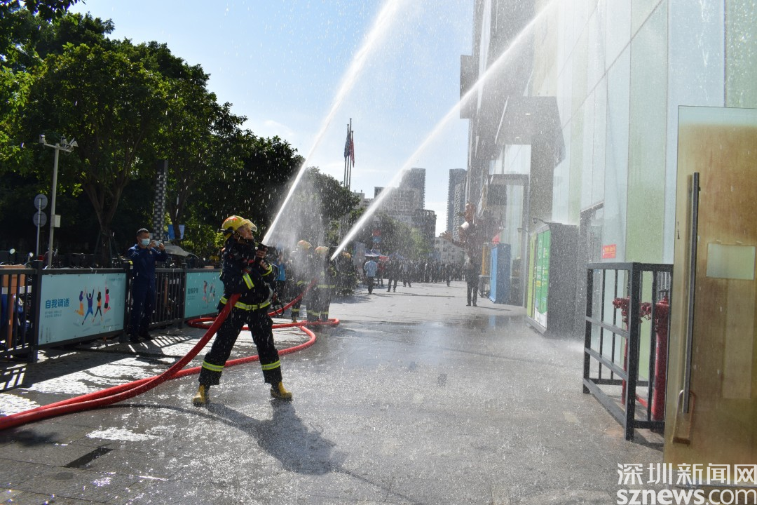 社區(qū)巡查人員發(fā)現(xiàn)水灣1979廣場三座發(fā)生火災(zāi),冒出大量濃煙,火勢處于初級階段,著火物質(zhì)不明,便立刻上報并撥打119報火警。確認水灣1979廣場三座發(fā)生火災(zāi)后,社區(qū)立即啟動消防應(yīng)急預(yù)案,消防演練正式開始。