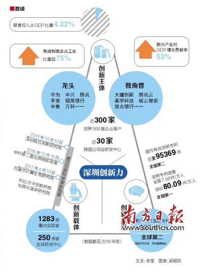 其二,海納百川,為我所用。創(chuàng)新驅動實質上是智力驅動、人才驅動。科技創(chuàng)新要取得突破,關鍵在人才。深圳近年來創(chuàng)新驅動發(fā)展取得明顯成效,一個重要原因就是造就了一批規(guī)模宏大、結構合理、敢于擔當?shù)母邔哟蝿?chuàng)新人才隊伍,以80后、90后為代表的一批年輕企業(yè)家加速向深圳集聚,逐漸成為創(chuàng)業(yè)創(chuàng)新的中堅力量。同時,加大招才引智力度,2016年新引進“孔雀計劃”高層次創(chuàng)新團隊23個、全職院士6名,新增海歸人才1.05萬人、高技能人才12.6萬人。更加可喜的是,一批世界頂級科學家先后入駐深圳,諾貝爾獎獲得者羅伯特·格拉布斯與南方科技大學合作致力于新醫(yī)藥、新材料和新能源領域研究,諾貝爾物理學獎獲得者中村修二組建中村修二激光照明實驗室在下一代照明技術領域開展前沿研究……毫無疑問,深圳已經(jīng)成為對全球高端人才最具吸引力的地方之一。