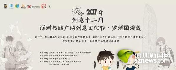 2017創(chuàng)意十二月“深圳書(shū)城廣場(chǎng)創(chuàng)意文化節(jié)? 羅湖國(guó)漫賞”活動(dòng)是在羅湖區(qū)投資推廣局特別支持下,由深圳出版發(fā)行集團(tuán)主辦,深圳市書(shū)城文化投資控股有限公司承辦,北京磨鐵圖書(shū)有限公司、一本OneBook、漫漫漫畫(huà)共同協(xié)辦的系列國(guó)漫主題文化交流活動(dòng)。
